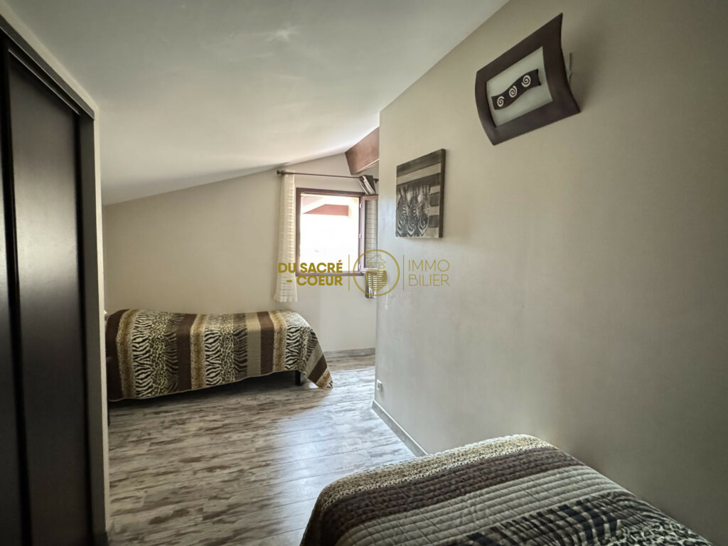Au sein d’un ensemble immobilier édifié en 2012, cet appartement T3 en duplex de 74.09m2 loi carrez + Place de Parking propose des prestations modernes et un confort appréciable. Dès l’entrée, vous découvrirez un spacieux séjour avec coin cuisine aménagé et entièrement équipée climatisé ainsi qu’un w.c indépendant, a l’étage vous découvrirez deux chambres au beau volume avec placard le tout agrémenté d’une salle d’eau avec w.c. Les menuiseries en PVC double vitrage assurent une bonne isolation thermique et phonique, complétées par des volets traditionnels électriques pour plus de praticité au quotidien.