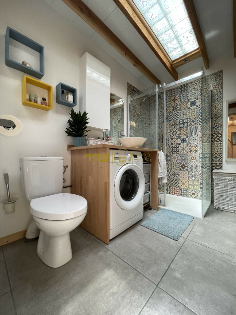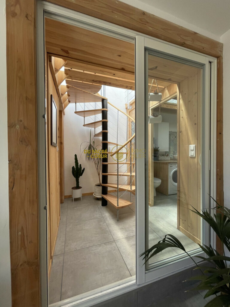 Très Lumineuse et Fonctionnelle elle développe plus de 67m² Habitable. Pièce de vie de plus de 28 m² avec patio intérieur. Espace séjour table repas 5 personnes idéal pour recevoir vos amis devant un chaleureux poêle à granulés. Pièce très agréable baignée de soleil par ses nombreuses ouvertures et ses puits de lumières.
