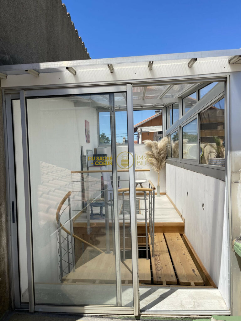 A l’étage de nombreuses possibilitées avec un espace bureau/patio baigné de lumière par sa toiture en poly carbonate pour une parfaite isolation accès direct sur terrasse de toit intime exposition plein sud avec arrivée d’eau et électricité ou vous apprécierez de vous détendre en toute intimité.