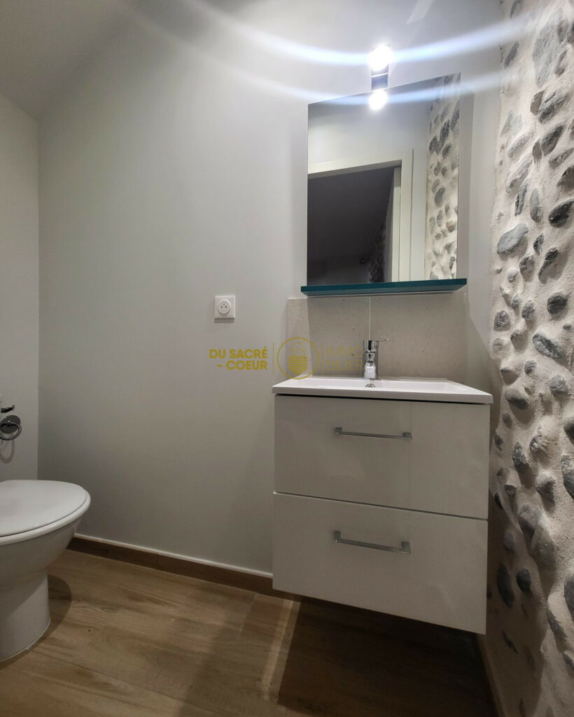 Elle bénéficie d’une exposition sud ouest C’est une maison de 2 niveaux Entièrement Rénovée avec Beaucoup de Goût Pour Sa Mise en Location Elle Vous Offre Belle Pièce de Vie de 24m² avec Cuisine Américaine Entièrement Equipée par la Marque Cuisinella 2 Chambres Dont 1 Suite Parentale de 19m² avec Placard Aménagé Salle d’Eau Privative avec Fenêtre et wc Doubles Sanitaires 2 Salle d’Eau avec Douches Italiennes et 2 Wc Dont 1 Indépendant Vous Apprécierez sa Véritable Pièce Buanderie Logement Econome Classé RT 2020 DPE B GES A avec Chauffage Clim Réversible pour un Confort Thermique Eté Comme Hiver Menuiseries Alu Doubles Vitrages Volets Roulants Electriques Electricité aux Normes Son Grand Garage de lus de 28m² avec Grande Ouverture Vous Permettra de Garer 1 Véhicule 4 Roues + Moto et Stockage Divers Vous Adorerez sa Grande Terrasse Intime de 18 m² Baignée de Soleil Offrant une Belle Vue sur la Réal et le Clocher Ce Petit Bijoux Sera le Logement Idéal Pour 1 Couple Perpignan est Juste à 10mns Niveau transports en commun, il y a les gares Millas, Ille-sur-Têt et Saint-Féliu-d’Avall à moins de 10 minutes en voiture. On trouve un accès à la nationale N116 à 4 km.