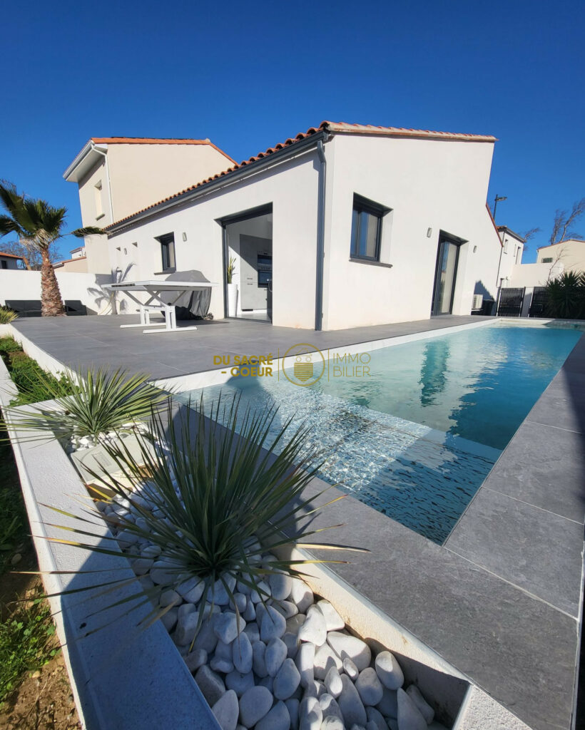 EXCLUSIVITE à PEZILLA LA RIVIERE Sublime Villa Récente RT 2012 en PPied T4 + Garage 3 Faces sur 300m² avec Piscine Couloir de Nage