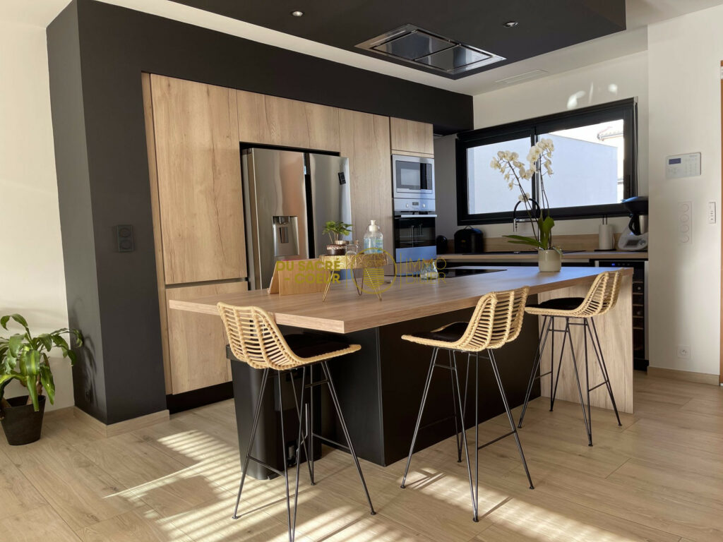 Très Conviviale Elle Séduira les Adeptes de Fourneaux avec son Ilôt Central Table Repas 8 Personnes Aménagée d’un Point Cuisson et Hotte Tout Inox Déportée