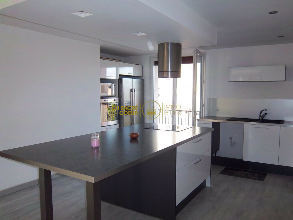 Cuisine Américaine Entièrement Equipée Haut de gamme Avec Ilôt Central Table Repas 10 Personnes Elle Est Attenante à un Balcon Expo Sud