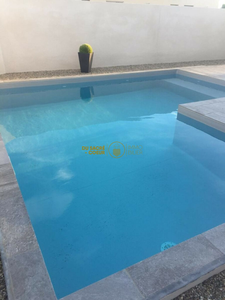 Il Accueille une Agréable Piscine en L Maçonnée avec Lyner de 5m50 x 3m50 Elle est Sous Garantie Décennales Jusqu’en 09/2024