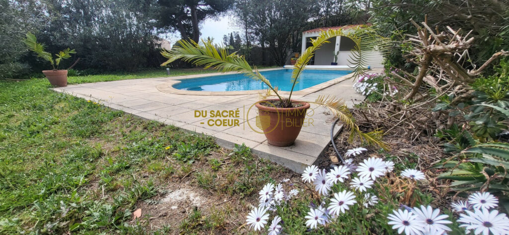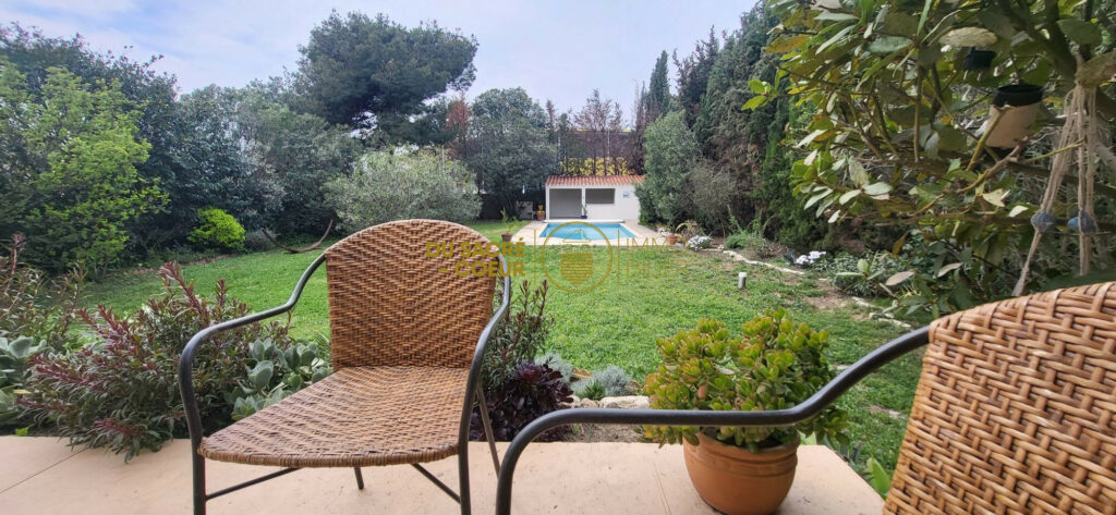Grand Espace Extérieur Joliment  Arboré et Bien Entretenu avec Piscine et Local Piscine en Dur