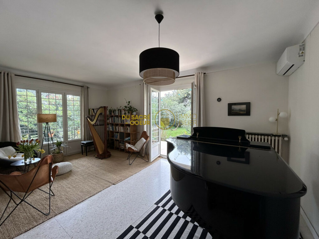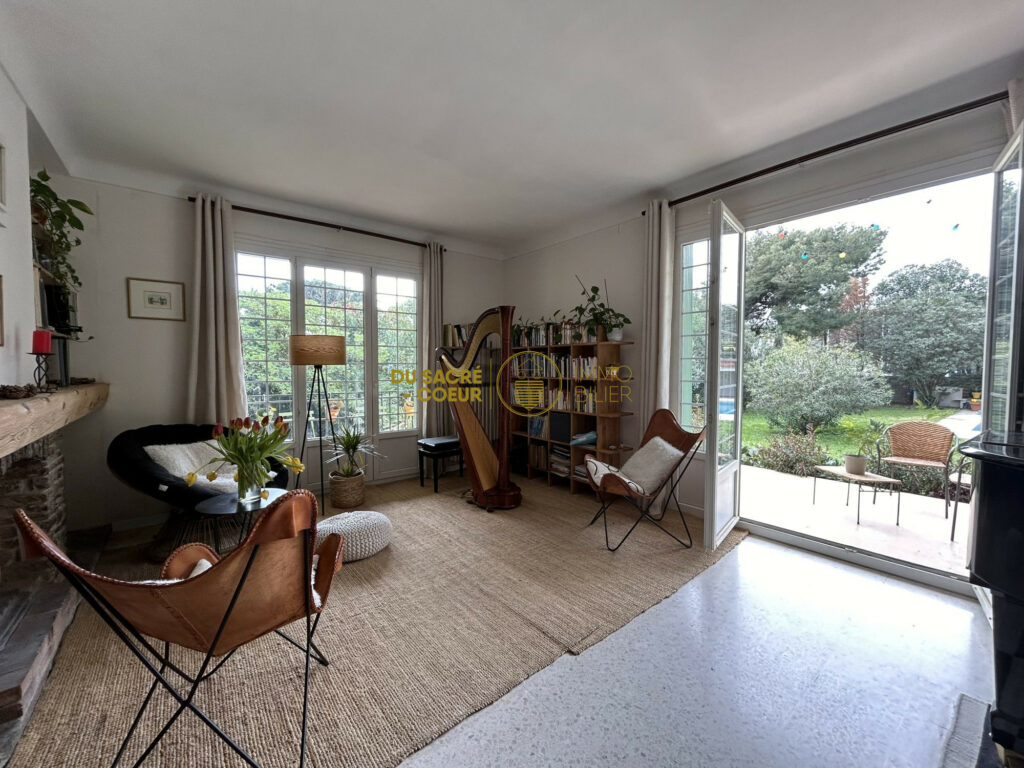 Elle offre Plus de 45m2 de Pièce de Vie avec Bibliothéque donnant Accès à une Terrasse Vue Piscine