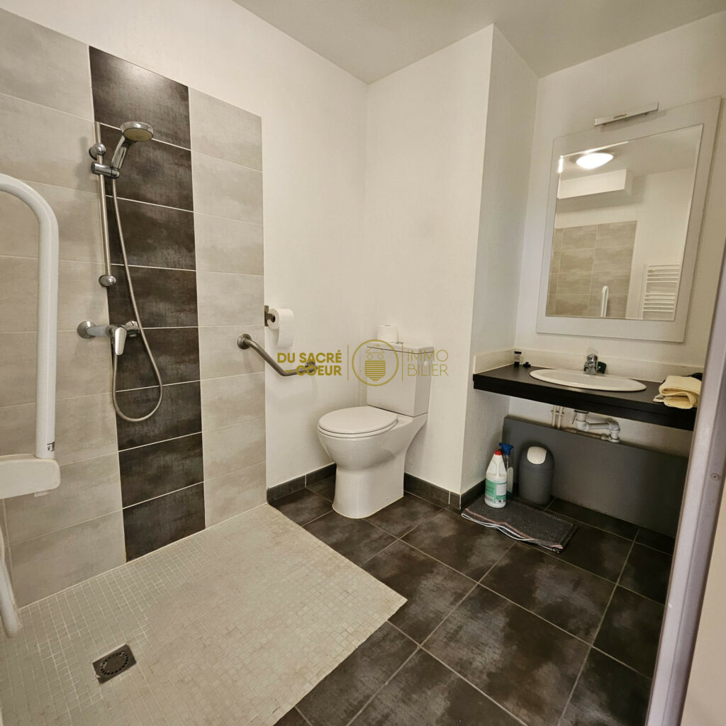 La Salle d’Eau Accès Handicapé se Compose d’une Douche Italienne d’une Vasque et d’un Wc