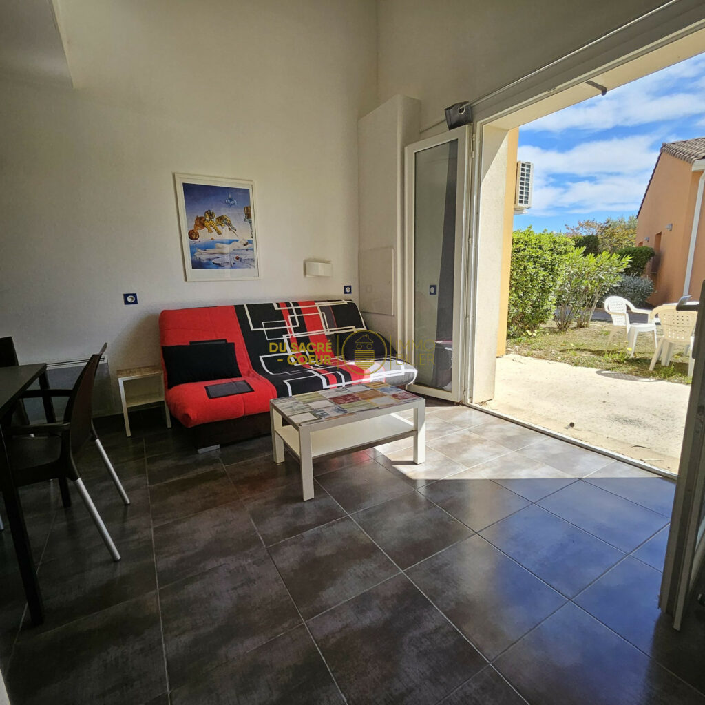 Elle se Compose d’une Belle Pièce de Vie Expo Sud Est Ouverte sur l’Extérieur Desservant Canapé Clic Clac 2 Couchages Téléviseur Table Repas 4 Personnes et Cuisine Américaine Entièrement Equipée