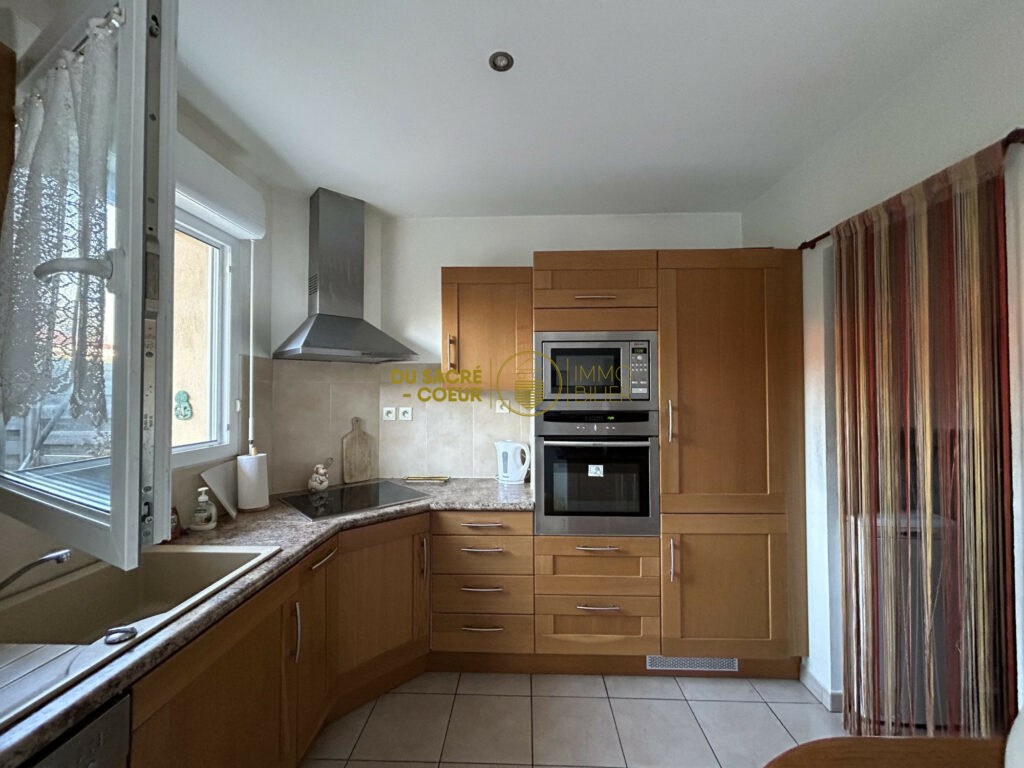 Sa Cuisine Américaine Aménagée et Équipée de la Marque Neff (Lave Vaisselle, Hotte, Plaque induction, Micro onde..) Bénéficie d’une Arrière-Cuisine permettant la Facilité de Stockage des Denrées Alimentaires