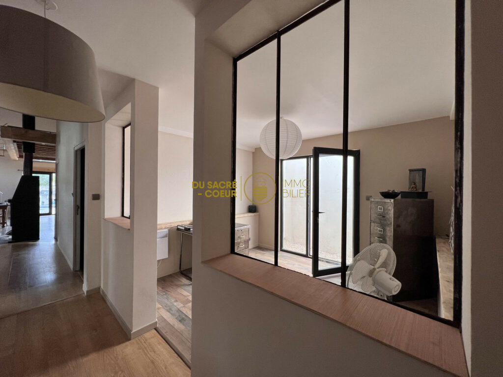 80m² digne d’une ambiance chalet de montagne, ouvrez les yeux et profitez de ce fabuleux cadre de vie, un intérieur scandinave avec poêle à bois de marque Godin, poutres apparentes hauteur sous plafond à 5.90m et ses nombreuses ouvertures sur l’extérieur avec vue piscine..